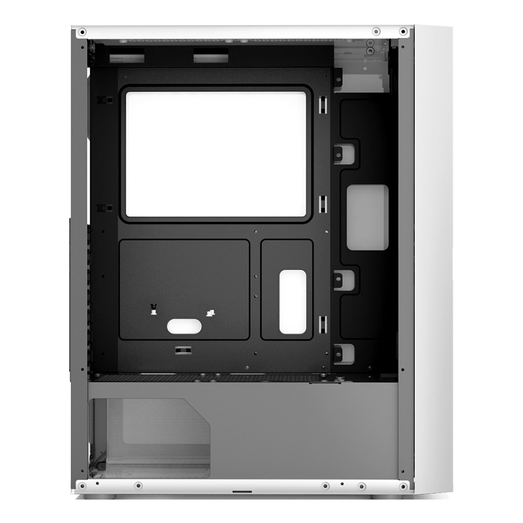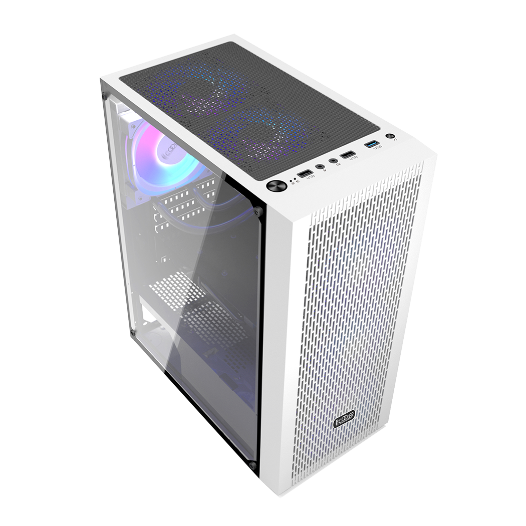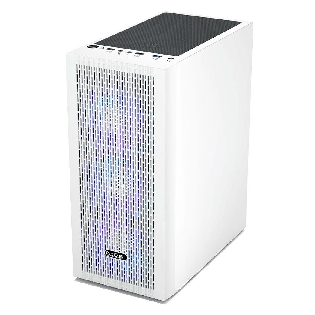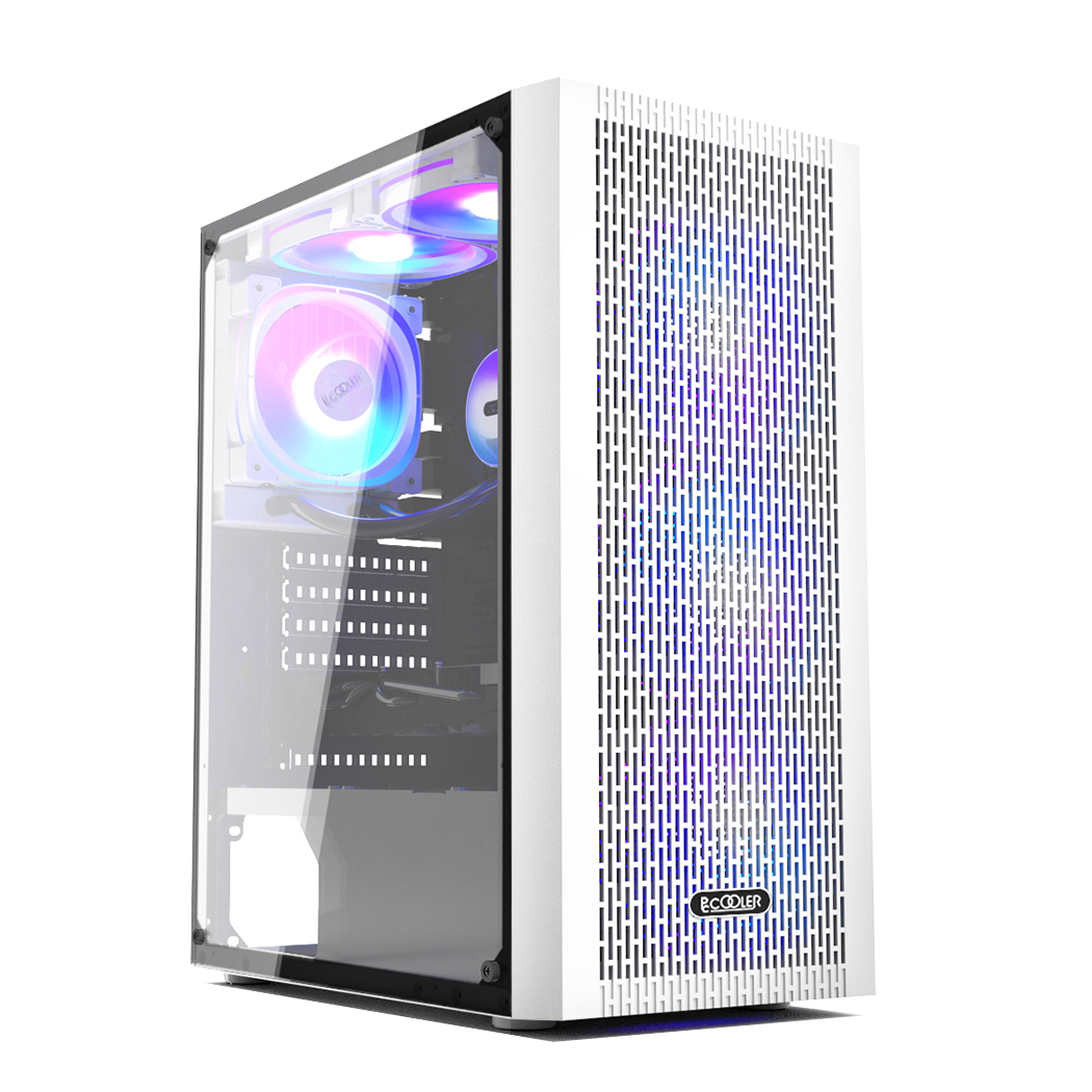 Carcasa PCCOOLER, Middle Tower, ATX, fara sursa, sticla securizata, 3 ventilatoare incluse, iluminare ARGB, alb, USB 3.2 gen 1 x 1, USB 2.0 x 2, mic, audio