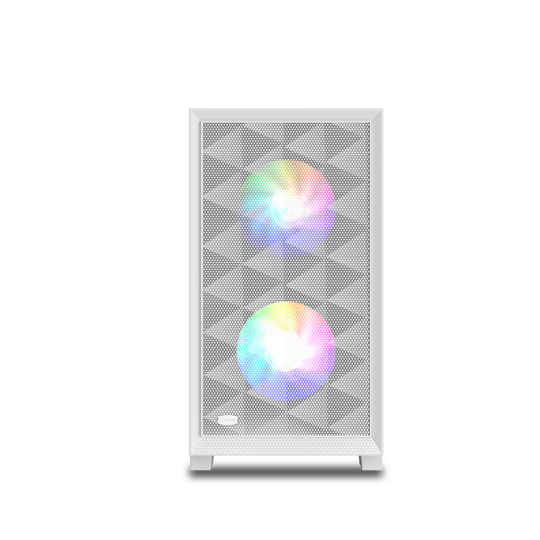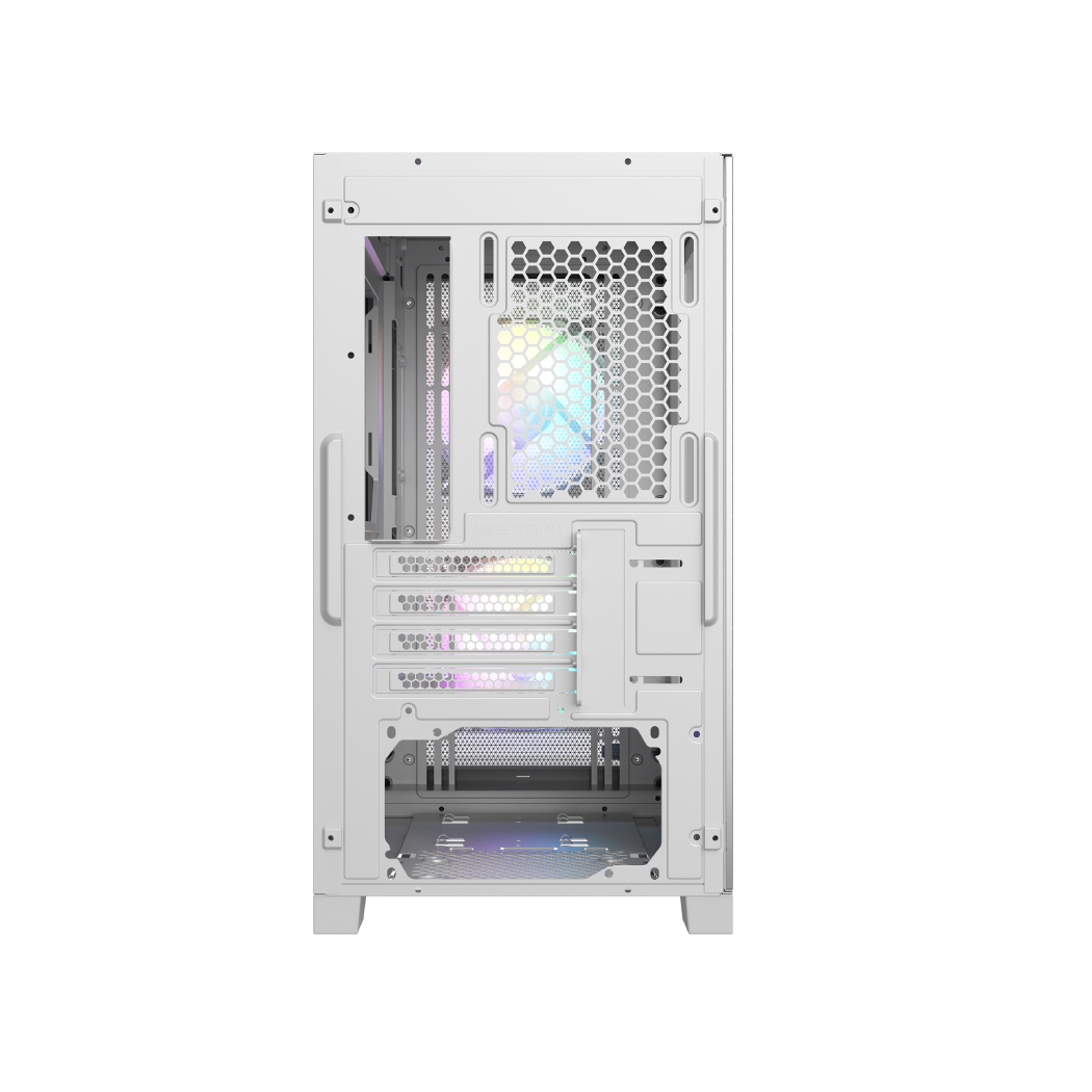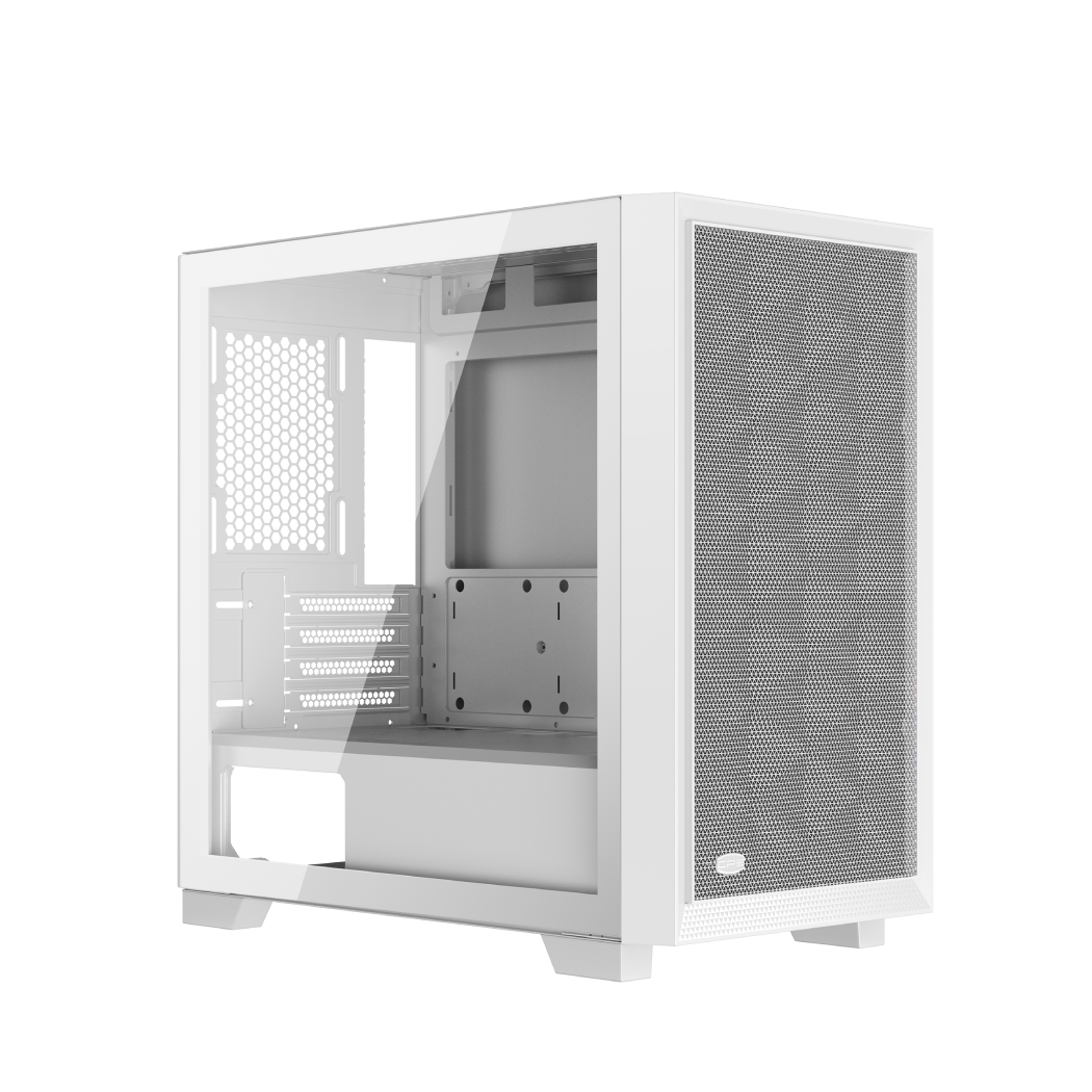 Carcasa PCCOOLER, Mini Tower, mATX, fara sursa, sticla securizata, 2 ventilatoare incluse, iluminare ARGB, alb, USB 3.2 gen 2 x 2, mic, audio
