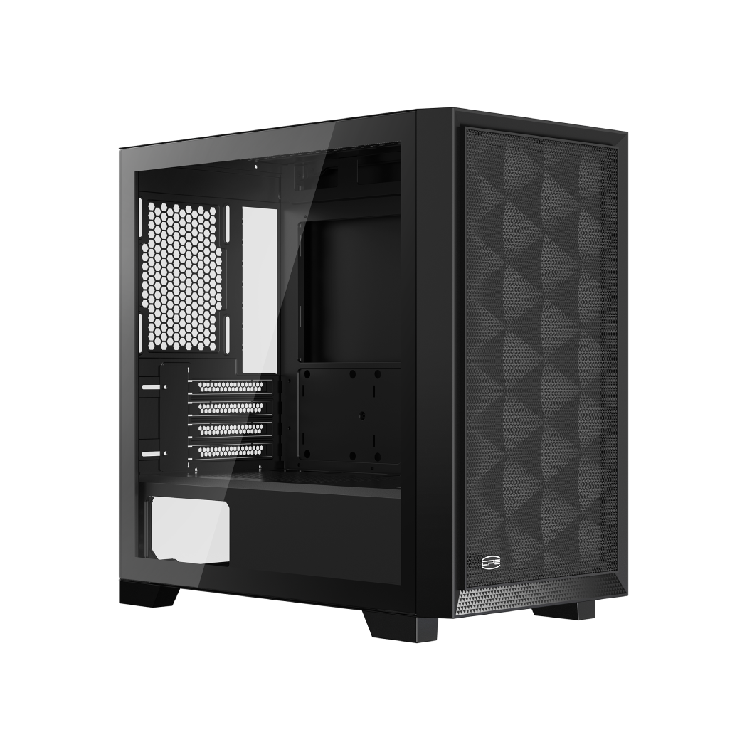 Carcasa PCCOOLER, Mini Tower, mATX, fara sursa, sticla securizata, 2 ventilatoare incluse, iluminare ARGB, negru, USB 3.2 gen 2 x 2, mic, audio