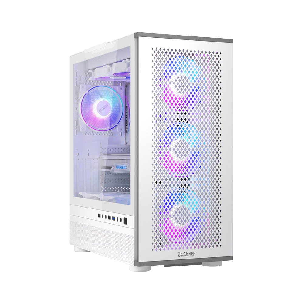 CARCASA PCCOOLER, Tower, ATX, fara sursa, sticla securizata, 3 ventilatoare incluse, iluminare ARGB, alb, USB 3.2 gen 1 x 1, USB 2.0 x 2, mic, audio, „ME200 MESH WH”