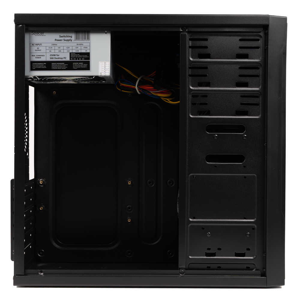 Carcasa SPACER SPCS-OC-APOLLO-250W Mid Tower NEGRU, Sloturi Expansiune 6, Drive Bays: 2×5.25″ 5×3.5″ 1×2.5″, Ventilatoare Suportate: 2, Format Placa De Baza Suportat: Mini-ITX, Micro-ATX, ATX, Lungime Maxima Placa Video: 280mm, Inaltime Maxima Cooler Procesor: 145mm, sursa 250W inclusa