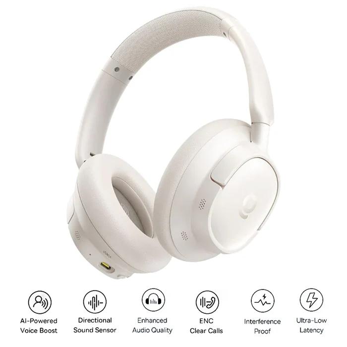 CASTI Baseus Bowie Bass BH1 Lite Wireless Noise Cancelling, over ear, 40mm Dynamic Drivers, autonomie 80 ore, microfon pe casca, conectare prin Bluetooth 6.0, alb „A0203C02” (timbru verde 0.18 lei) – 6953156299290
