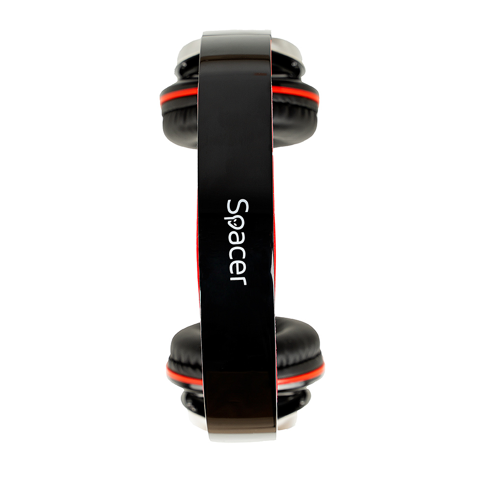 Casti cu fir, Spacer, utilizare multimedia, microfon pe fir, pliabile, banda ajustabila, conectare prin Jack 3.5 mm x 2, negru cu rosu