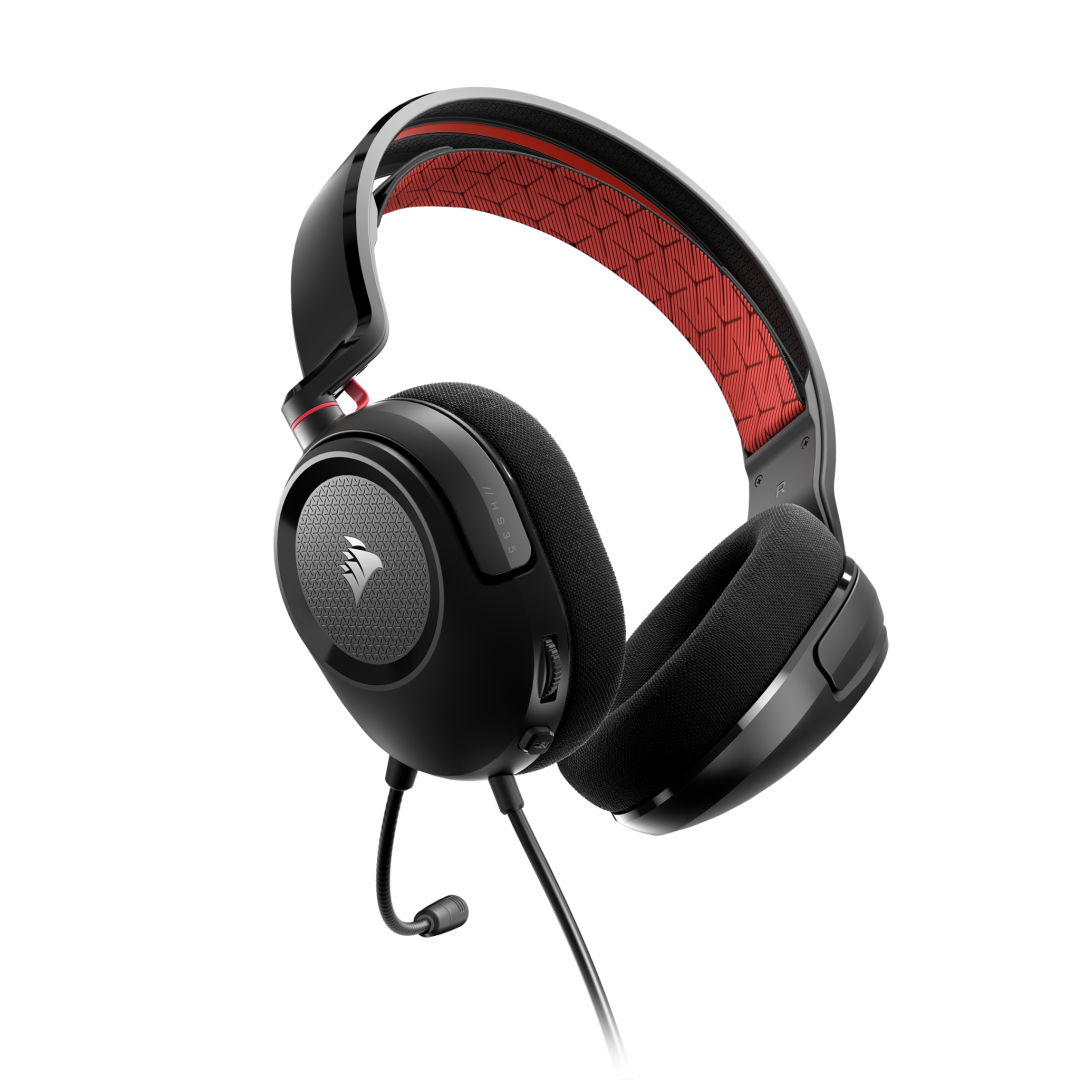 Casti Gaming CORSAIR HS35 V2 ROSU, dimensiune difuzoare 50mm neodymium, frecventa raspuns 20Hz-20kHz, impedance 32 Ohms@ 1kHz, sensitivitate 114dB (+/- 3 dB), microfon omni-directional, impedance: 2.2k Ohms, frecventa raspuns 100Hz-10kHz, sensitivitate -42dB (+/- 3dB)