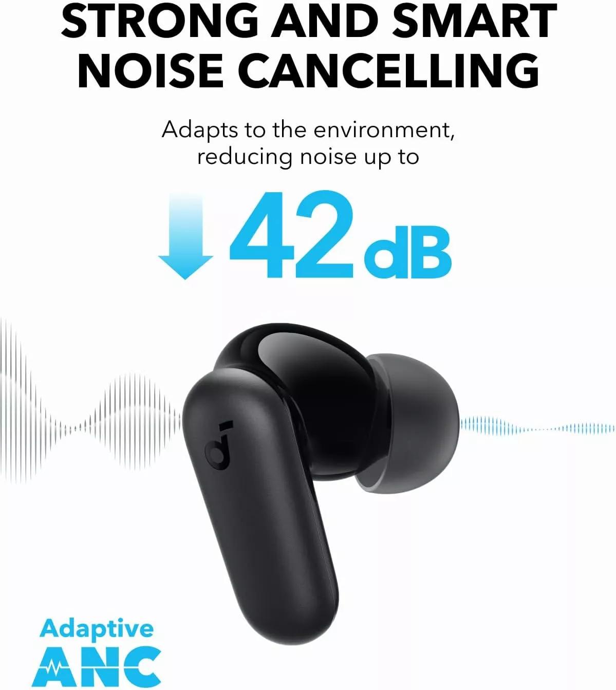 Casti In-Ear Anker Soundcore P30i, Wireless, Bluetooth 5.4, Smart ANC, 2-in-1 carcasa si stand, IP54, Negru