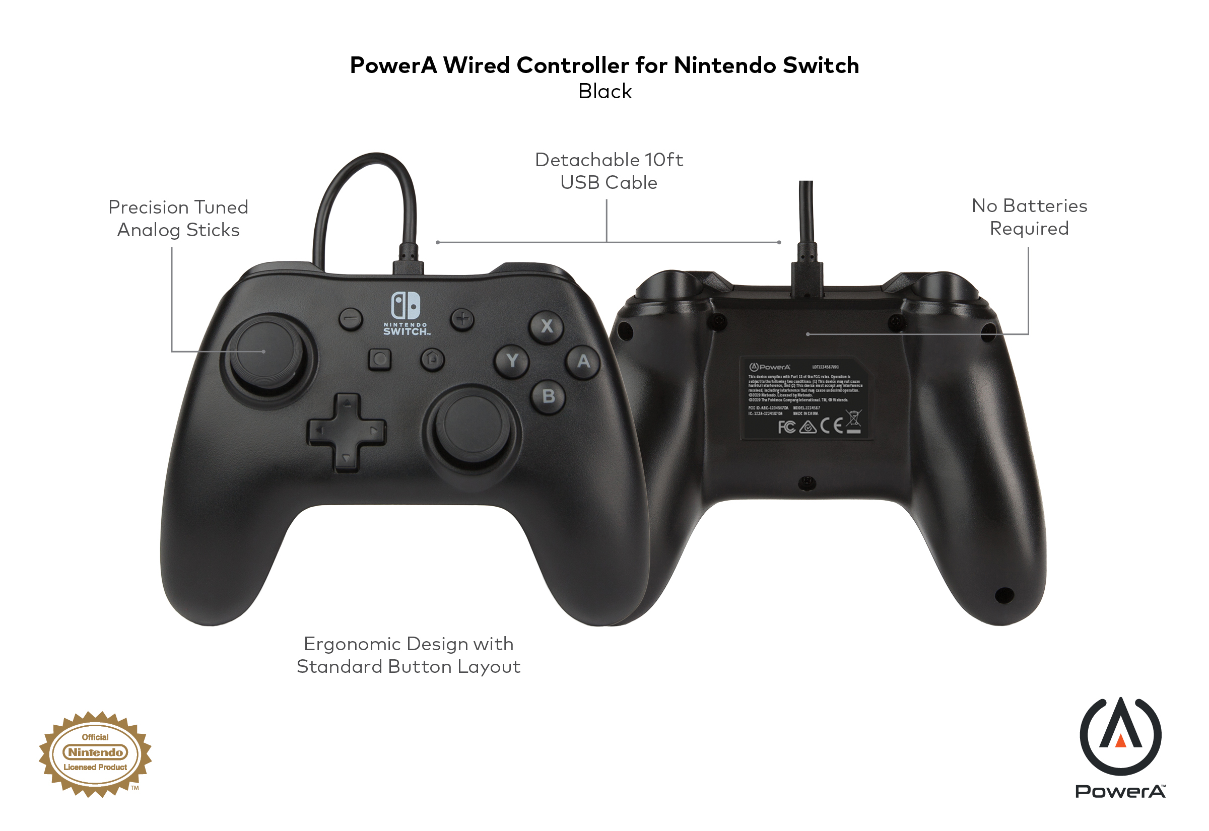 Controller cu fir, PowerA, Pentru Nintendo Switch, Negru