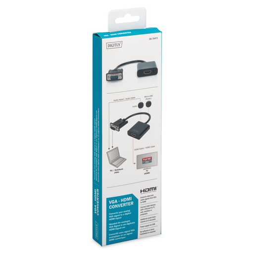 Convertor activ VGA+Audio – HDMI cu cablu, Digitus
