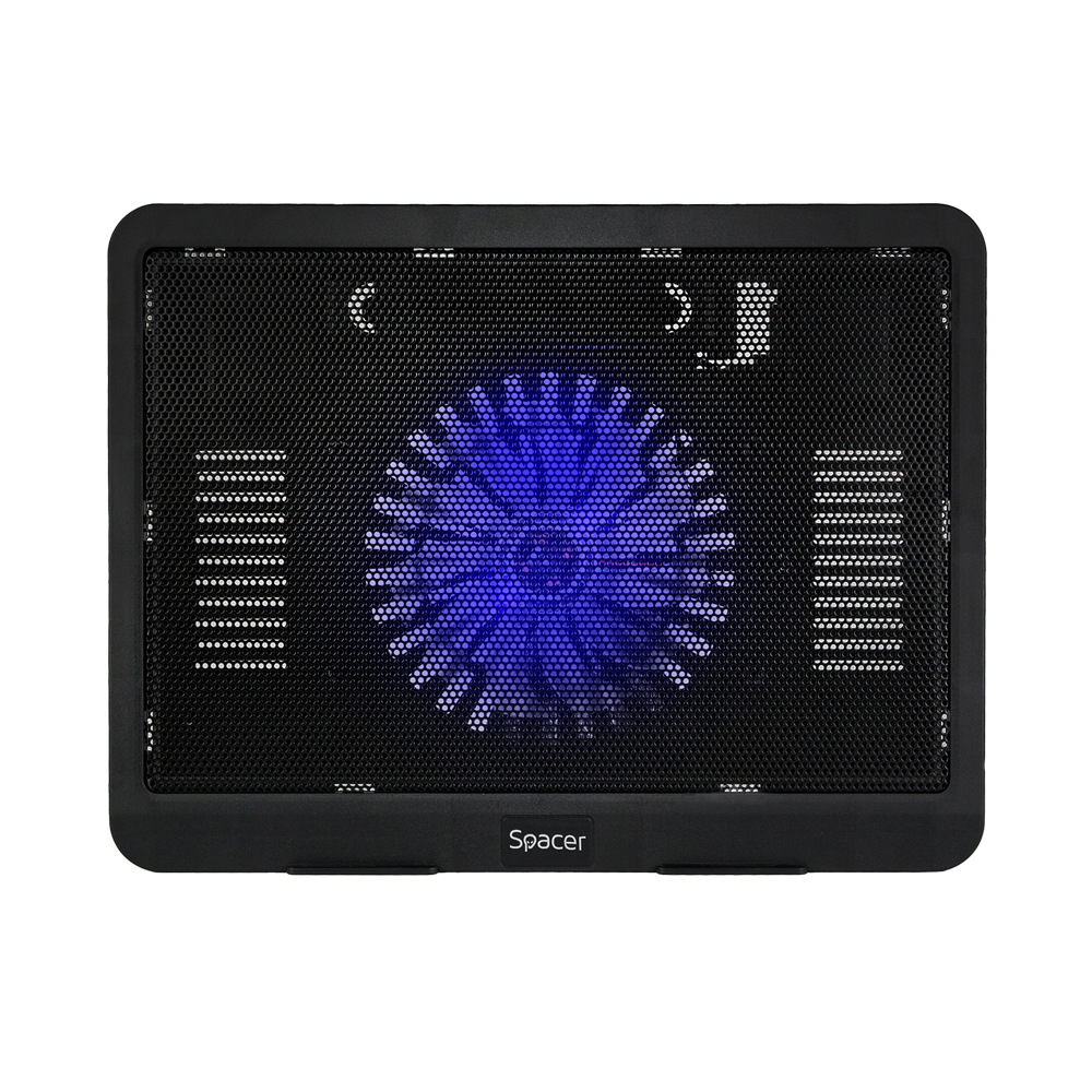 STAND LAPTOP SPACER SP-NC19 15.6″, sita metal, fan 14cm, led albastru, negru