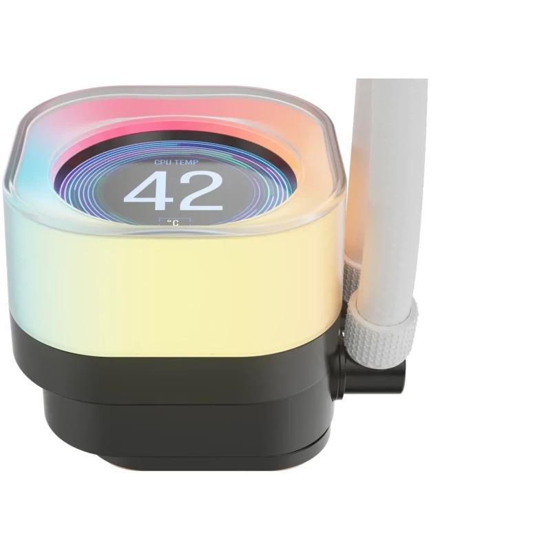 Cooler Procesor CORSAIR iCUE LINK TITAN 240 RX LCD ALB, dimensiune radiator 277x120x27mm, 2 ventilatoare ARGB, viteza ventilatoare: 300-2100RPM +/- 10%, Suport AMD: AM4/AM5, suport INTEL: LGA 1700/1851, Airflow: 73.5 CFM, Nivel de zgomot: 36 dBA