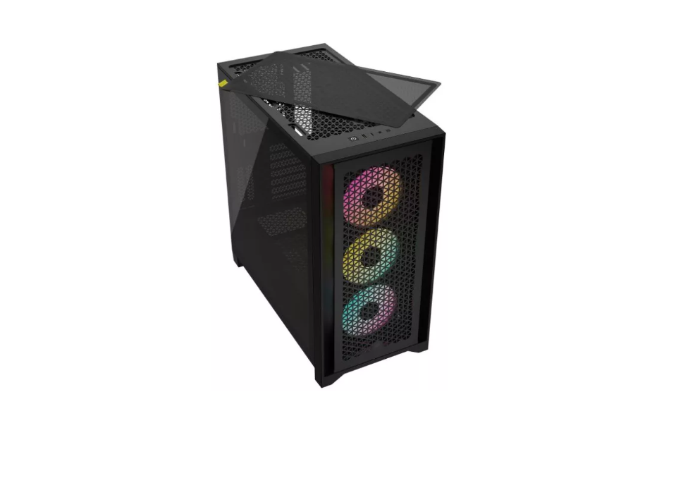 Carcasa Corsair iCUE 4000D RGB Airflow Mid Tower ATX, 3 ventilatoare incluse 120mm, 2x 3.5″ drive bays, 2x 2.5″ drive bays, dimensiune 466x453x230mm, negru