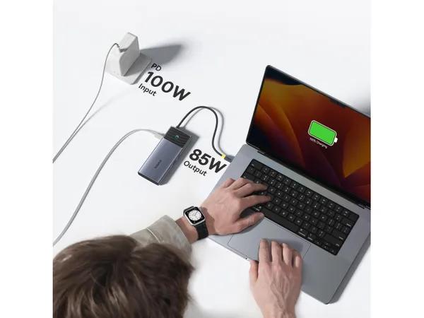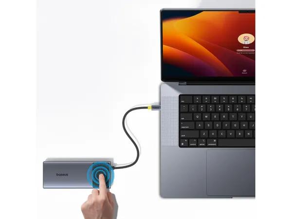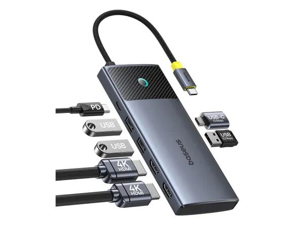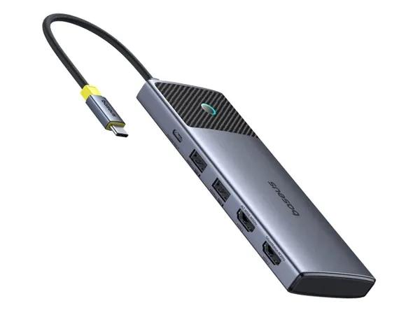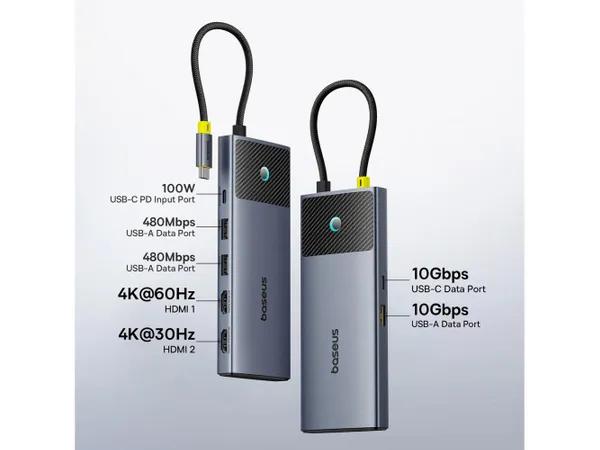 DOCKING Station Baseus Metal Gleam Series II 7-in-1, conec PC USB-C, USB 3.0×3, USB Type-Cx1, USB-Type-Cx1 PD 100W, HDMIx2/4K/60Hz,LED, gri „B00061806813-00” (timbru verde 0.18 lei) – 6932172657659