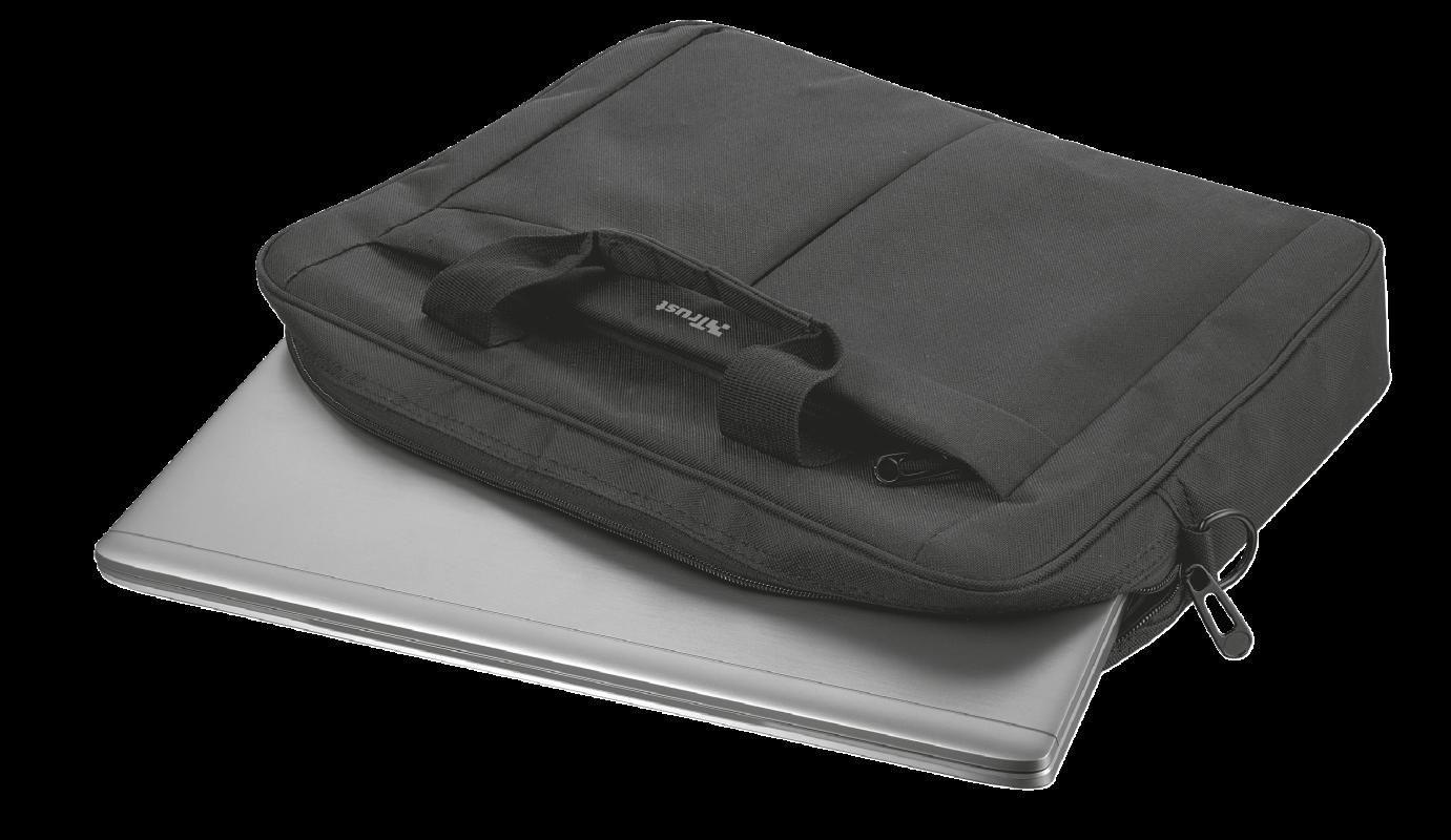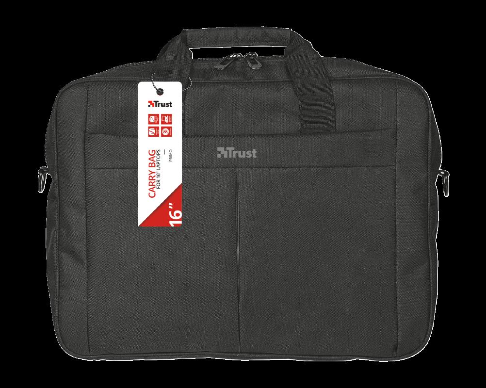 Geanta Trust Primo Carry Bag for 16″ laptops Specifications General Type of bag carry bag Number of compartments 2 Max. laptop size 16 ” Height of main product (in mm) 390 mm Width of main product (in mm) 320 mm Depth of main product (in mm) 65 mm Exterior Trolley wheels no Trolley strap no Zippers 2 metal zippers Opening type topload Carry handle yes Shoulder strap yes Shoulder strap detachable yes Shoulder strap padded no Interior Laptop compartment padded yes Laptop Compartment Height (mm) 385 mm Space divider yes Laptop Compartment Width (mm) 315 mm Laptop Compartment Depth (mm) 45 mm Protection Type of case softcase Waterproof no https://www.trust.com/en/product/21551-primo-carry-bag-for-16-laptops