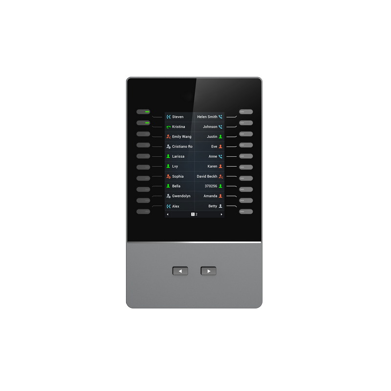 GBX20 je podsvícený LCD rozšiřující modul k IP telefonům GRP2615, GRP2624, GRP2650, GRP2670, GXV3350 a GXV3450. Modul obsahuje 20 dvoubarevných kláves a 2 klávesy se šipkami pro přepínání stránek. Na každém GBX20 můžete mít až 40 kontaktů/BLF (vidíte stav interní klapky). Při propojení až 4 GBX20, ke kompatibilním telefonům Grandstream, získáte celkem až 160 kontaktů/BLF.