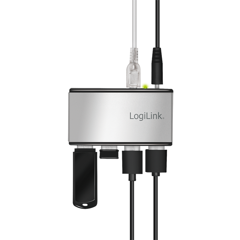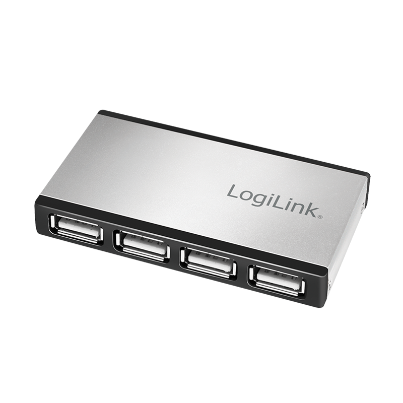 HUB extern LOGILINK, porturi USB: USB-A 2.0 x 4, conectare prin USB, aluminiu, argintiu