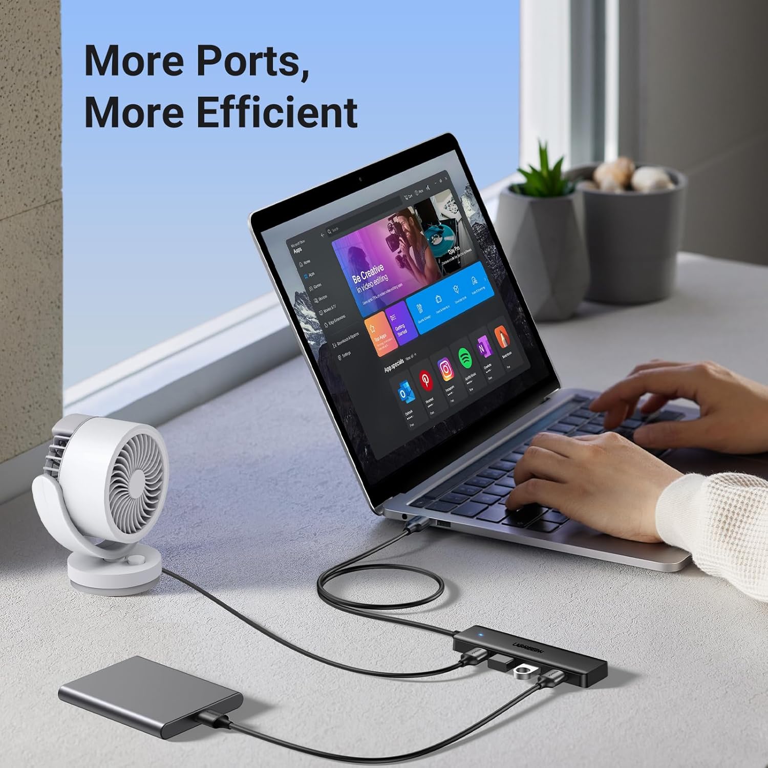 HUB extern Ugreen, „CM219” porturi USB: USB 3.0 x 4, conectare prin USB 3.0, aluminiu, lungime 15 cm, gri, „25946” (timbru verde 0.8 lei) – 6941876229468