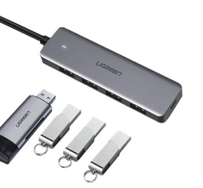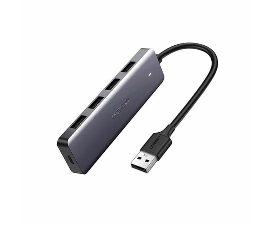 HUB extern Ugreen, „CM219” porturi USB: USB 3.0 x 4, conectare prin USB, material ABS, port micro USB 5V, lungime 15 cm, LED, gri, „50985” (timbru verde 0.8 lei) – 6957303859856