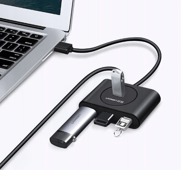 HUB extern Ugreen, „CR113” porturi USB: USB 3.0 x 4, conectare prin USB 3.0, lungime 0.5 m, negru, „20290” (timbru verde 0.8 lei) – 6957303822904