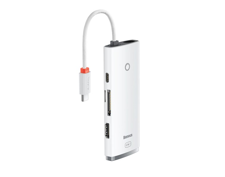 Docking Station Baseus Lite, conectare PC USB Type-C, USB 3.0 x 2, USB Type C x 1 PD, HDMI x 1/4K/30Hz, card reader SD/microSD, alb