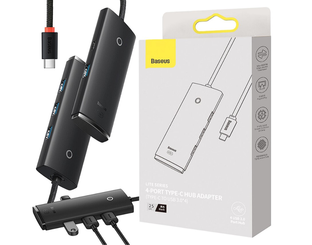 HUB USB Baseus Lite WKQX030401, 4 porturi USB 3.0,Type-C, lungime 1m, negru