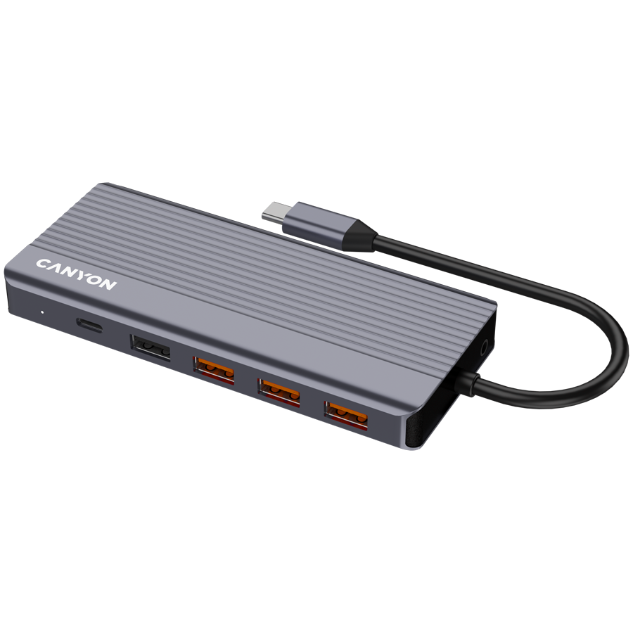 Hub USB, Canyon, DS-16, 13 in 1, 4k, USB-C, Gri