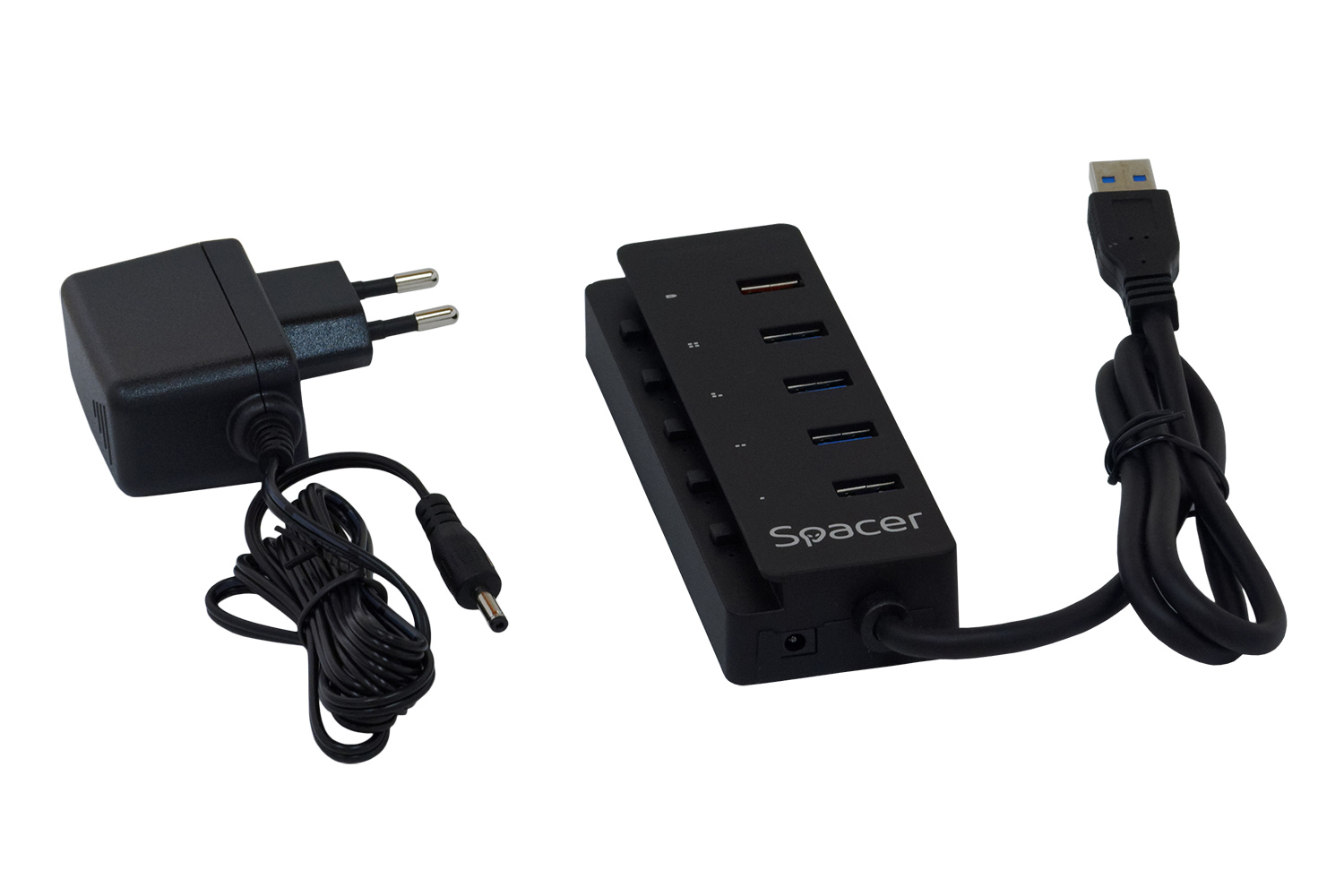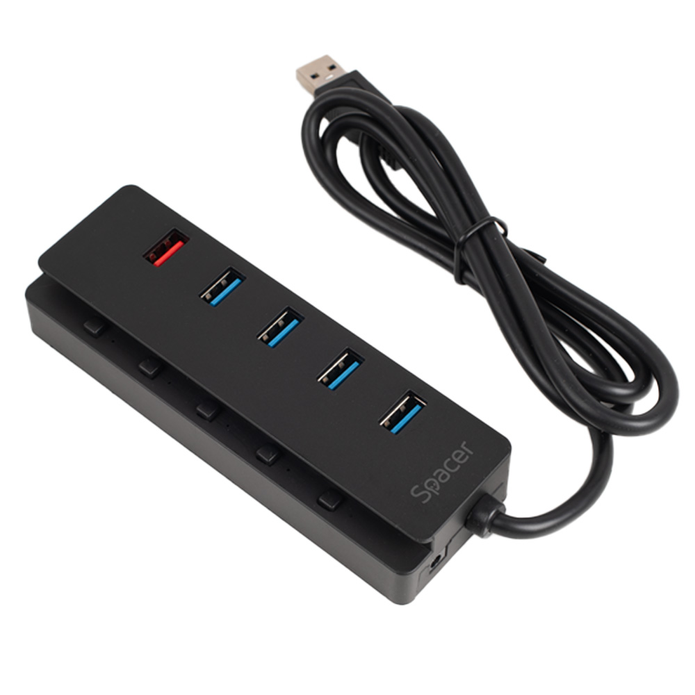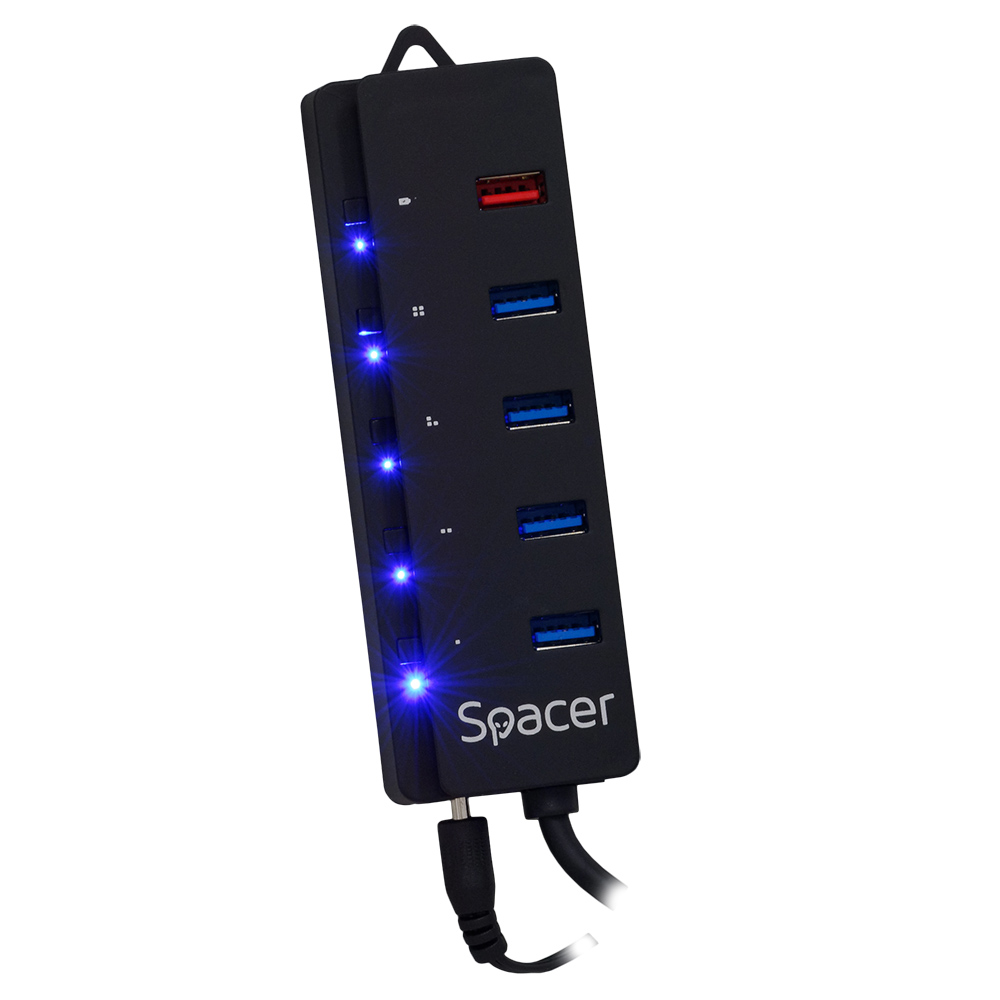 HUB extern SPACER, porturi USB: USB 3.0 x 4, Port USB Quick Charge x 1, conectare prin USB 3.0, Alimentare retea 220V,negru