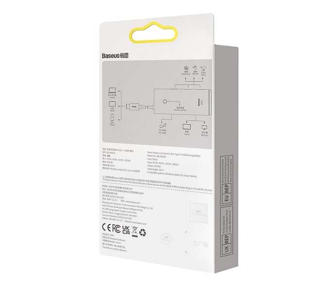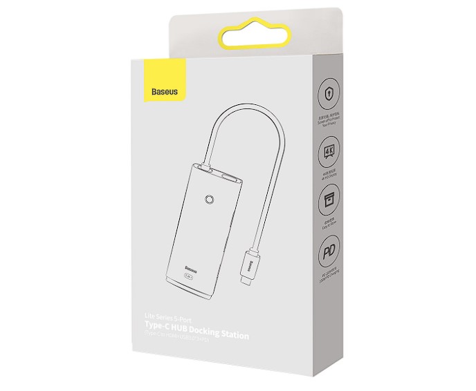 Docking Station Baseus Lite, conectare PC USB Type-C, USB 3.0 x 3, USB Type C x 1 PD 20V/5A, HDMI x 1/4K/30Hz, alb
