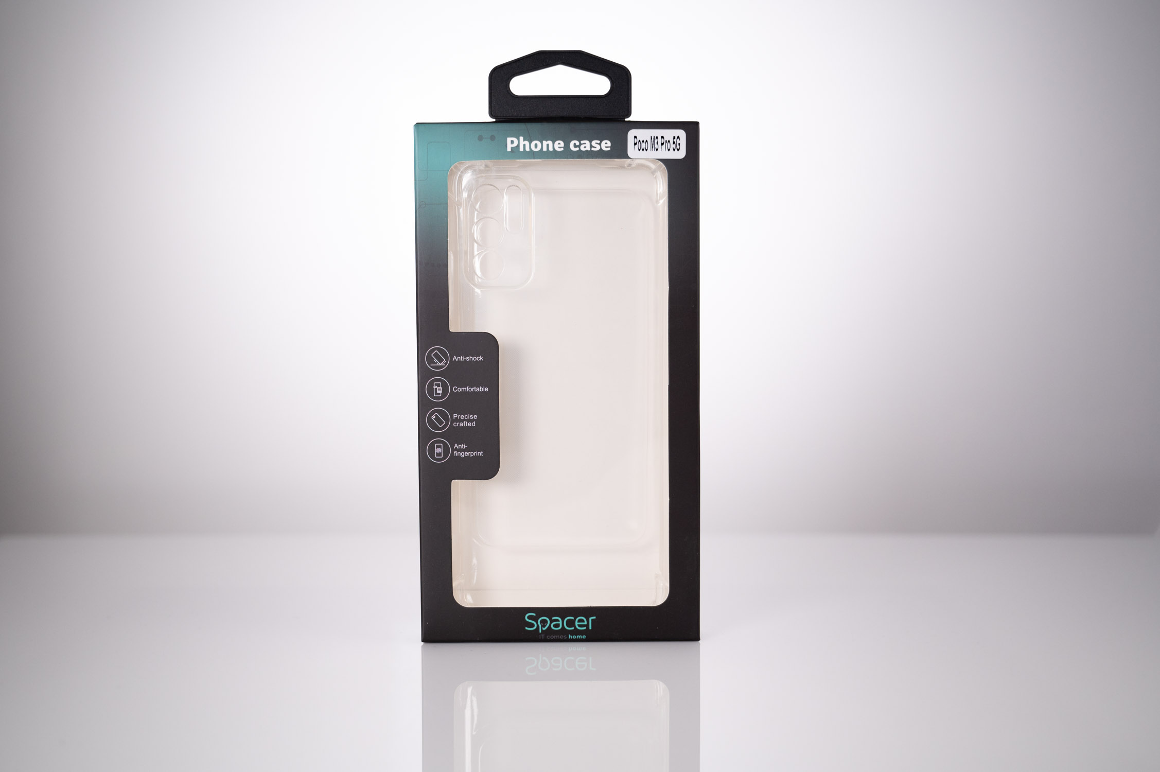 Husa de protectie Spacer pentru Xiaomi Pocophone M3 Pro 5G, protectie suplimentara antisoc la coltur material flexibil TPU, Transparenta