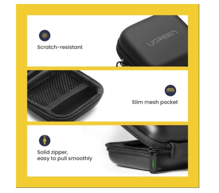 HUSA pentru casti Ugreen, „LP128” compartimentata in interior si pentru alte accesorii, negru „40816” – 6957303848164
