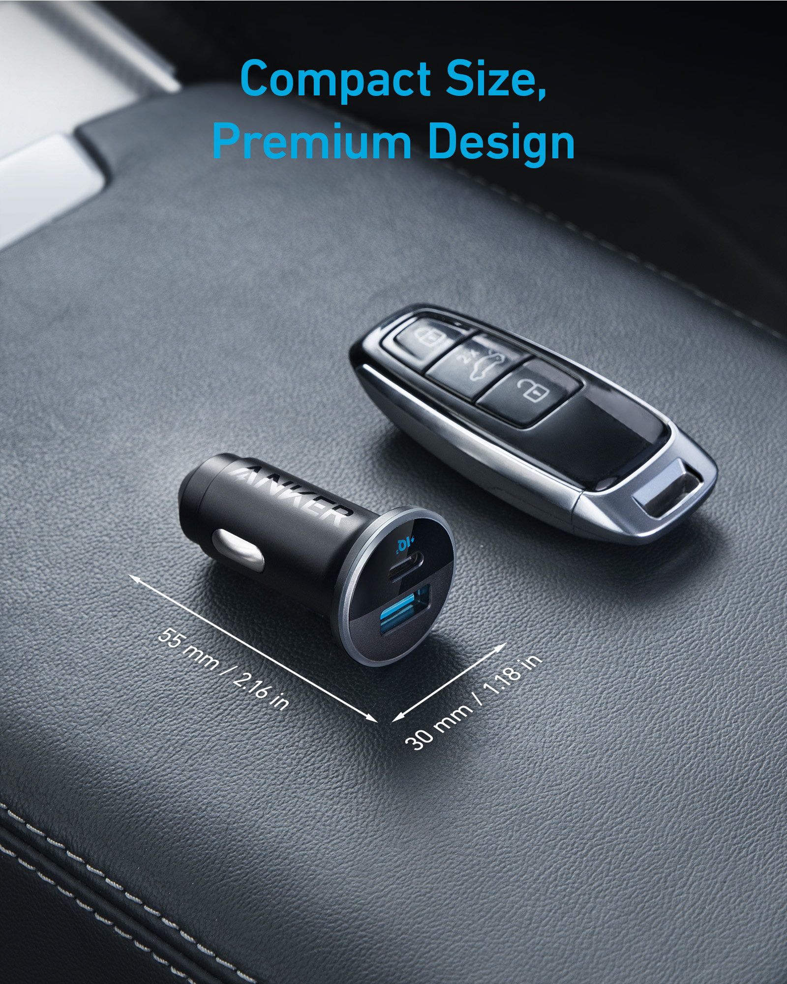 Incarcator auto Anker, „325” 53W, PowerIQ, 1 x USB Type-C, 1 x USB, Negru, „A2735G11”