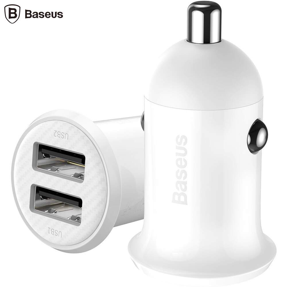INCARCATOR auto Baseus Grain Pro, 2 x USB Output 5V/4.8A total ambele porturi, pt. bricheta auto, alb