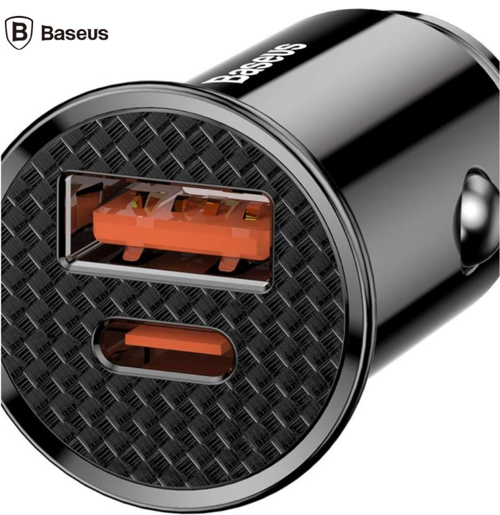 Incarcator auto Baseus Circular Plastic PPS, 1 x USB Output 4.5V/5A, 1 x USB Type-C Output 5V/3A, total output 30W, pt. bricheta auto, negru