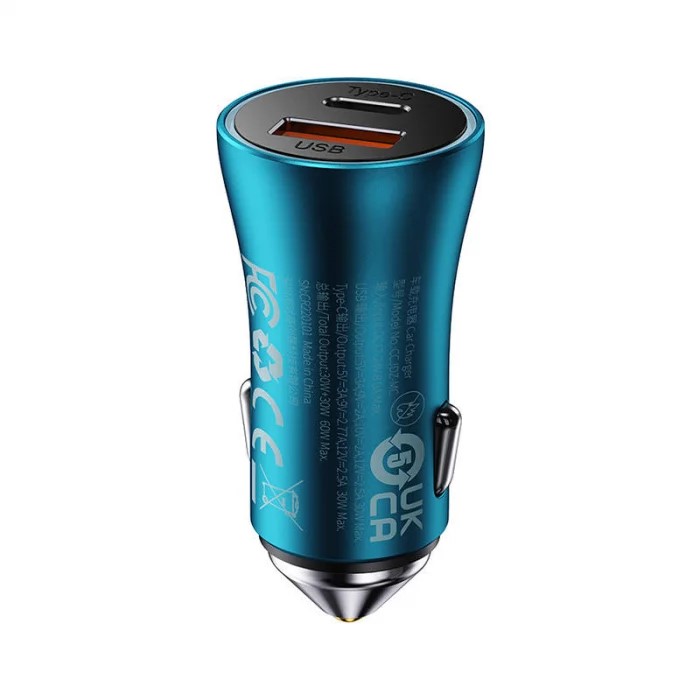 Incarcator auto, Baseus, USB + USB-C, 60 W, Albastru