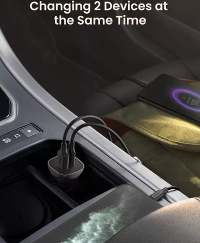 Incarcator auto Ugreen, CD130 1 x USB Output 5V/2.4A si 1 x USB Type-C Output 5V/3A, total output 18W, pt. bricheta auto, gri