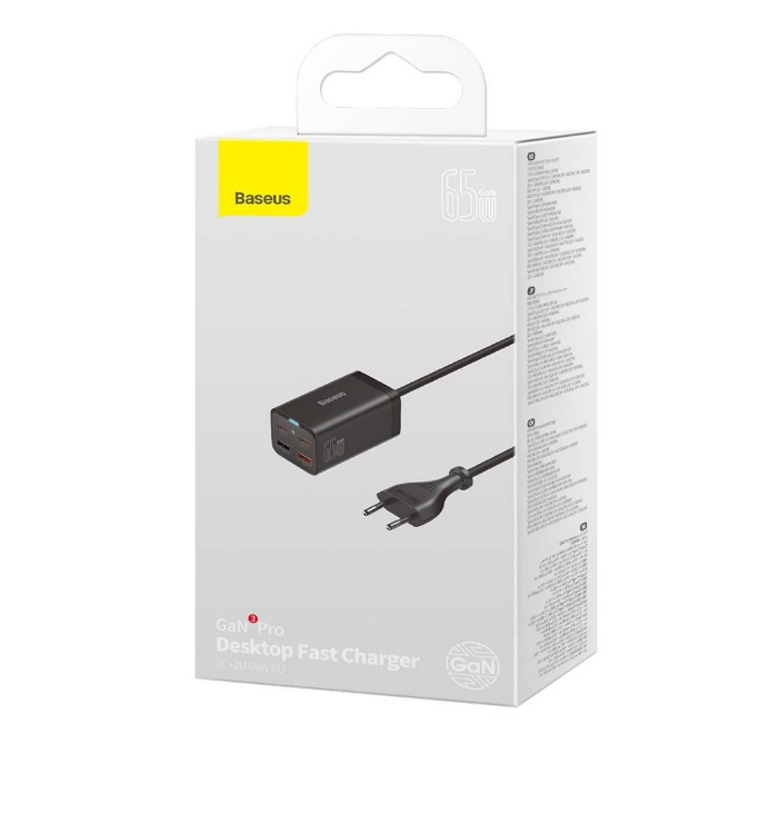 Incarcator rapid Baseus GaN3 Pro, 2x USB-C, 2x USB, 65W (negru)