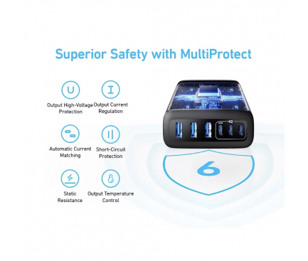 Incarcator retea Anker 112W 6 Porturi Slim negru