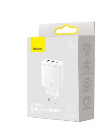 INCARCATOR retea Baseus Compact, Quick Charge 30W, 2 x USB 5V/3A, 1 x USB Type-C 5V/3A, alb