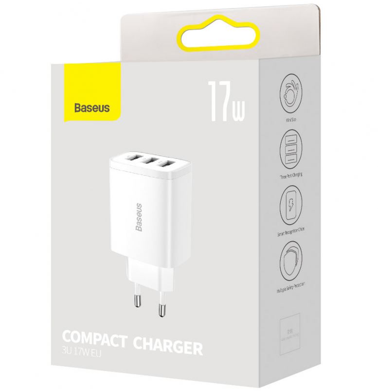 INCARCATOR retea Baseus Compact,17W, 3 x USB 5V/2.1A, alb „CCXJ020102” (timbru verde 0.18 lei) – 6932172606978