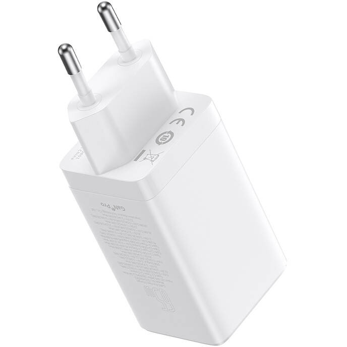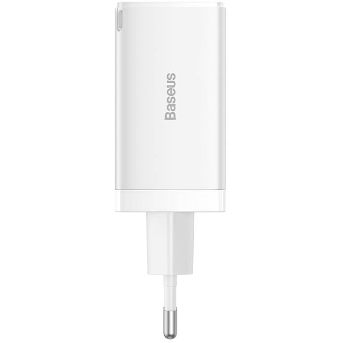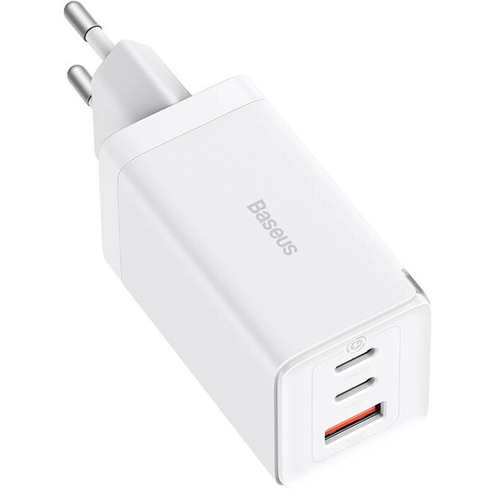 Incarcator retea Baseus GaN5, 65W, 2x USB-C, 1x USB (cablu USB-C inclus), Alb