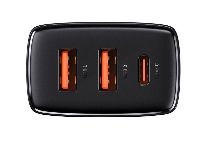 INCARCATOR retea Baseus Compact, Quick Charge 30W, 2 x USB Type-C Output 5V/3A, 1 x USB Output 5V/3A, negru
