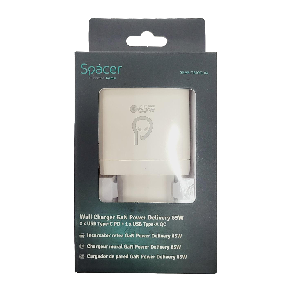 Incarcator reteaua Spacer, 2 x USB Type-C, 1 x USB, 65W, 220V