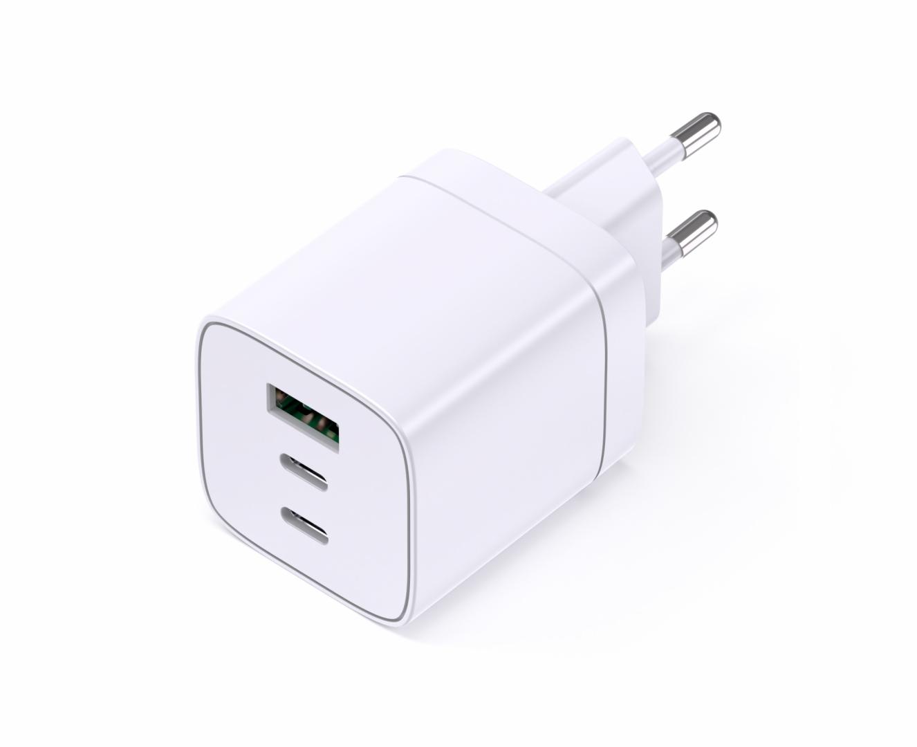 Incarcator cu USB-C-2+USB-A 65W • Alimentator/Incarcator cu USB •Ieșire USB-C: C1 și C2: 5V/3A, 9V/3A, 12V/3A, 15V/3A, 20V/3,25A (65W) PPS: 5-11V/5A (55W) A1: 5V/4,5A, 9V/3A, 12V/2,5A, 20V/1,5A(30W) C1+C2: 45W+20W (max. 65W) C1+A1: 45W+18W (max. 63W ) C2+A1: 7,5W+7,5W (max. 15W) C1+C2+A1: 45W+7,5W+7,5W(max. 60W) •Tensiune de intrare: 100-240VAC, 50/60Hz •Protecție la supratensiune și scurtcircuit •Dimensiuni: 83x40x40 mm (LxÎxl) • Greutate: aproximativ 121 g