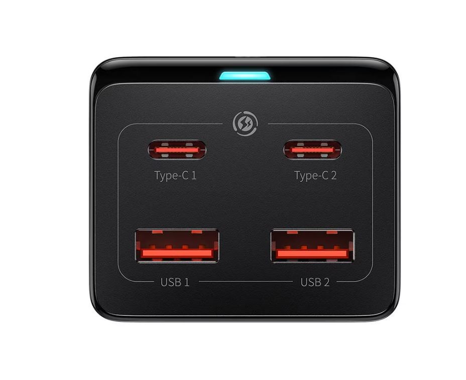 Incarcator telefon, Baseus, 2 x USB + 2 x USB-C, 100 W, Negru