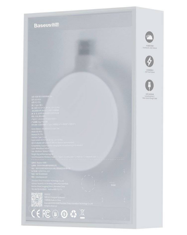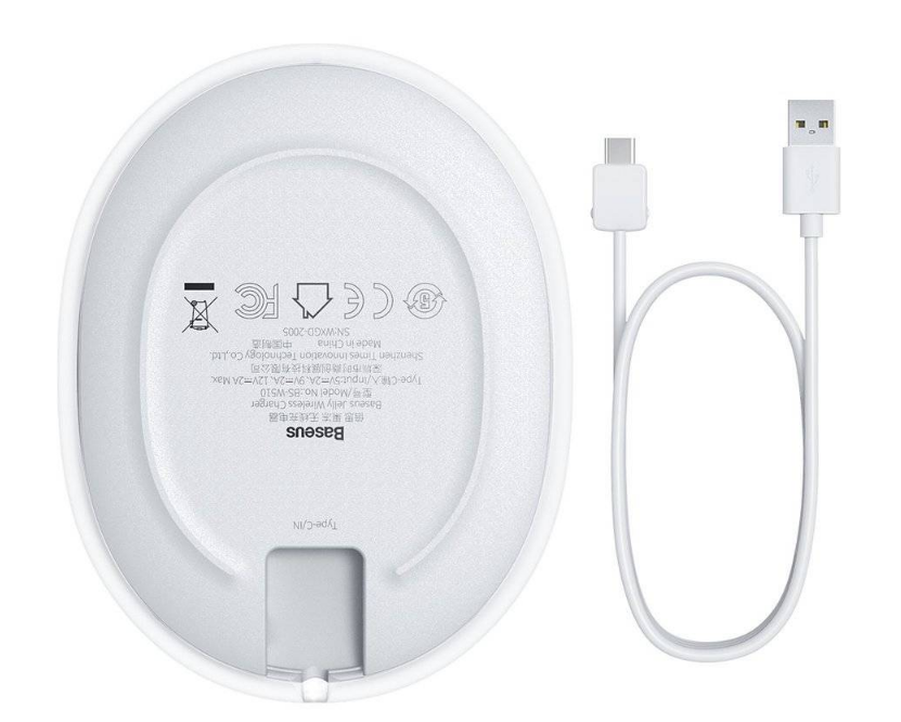 INCARCATOR wireless Baseus Jelly Qi 15W, compatibilitate smartphones, cablu Type-C la USB inclus, alb „WXGD-02” (timbru verde 0.18 lei) – 6953156223707