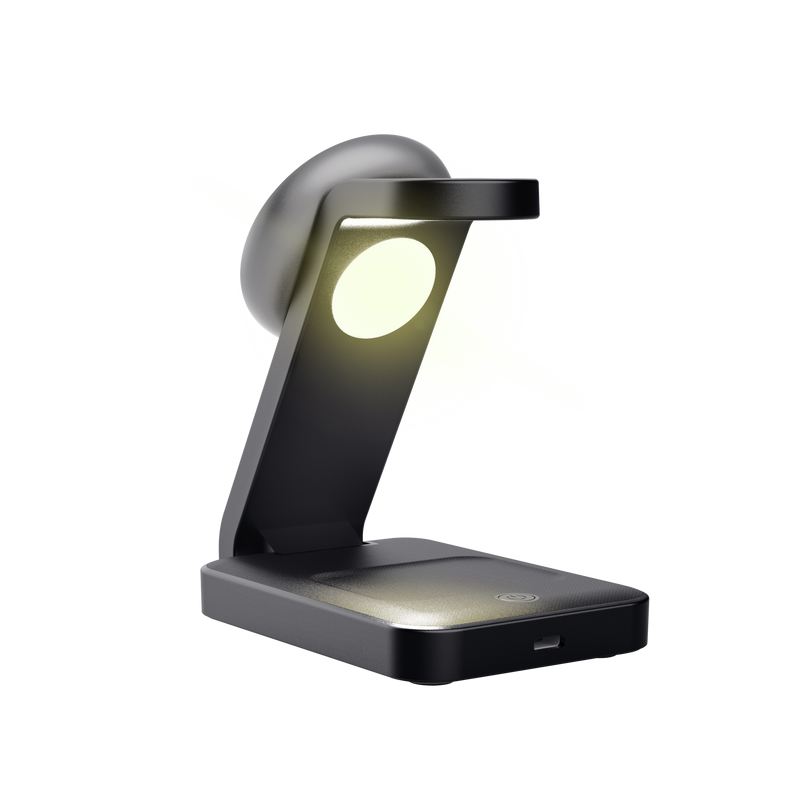 Stand de incarcare 3-in-1 Trust Viro, putere intrare 20W, interfata USB- C, compatibil cu produsele din brandul Apple: iPhone (12 si modele mai noi), Airpods si Apple Watch, negru