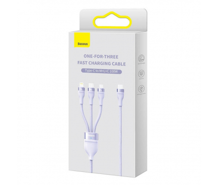 Kabel USB 3w1 Baseus Flash Series, USB-C + micro USB + tip Lightning, 100W, 1.2m (fioletowy)