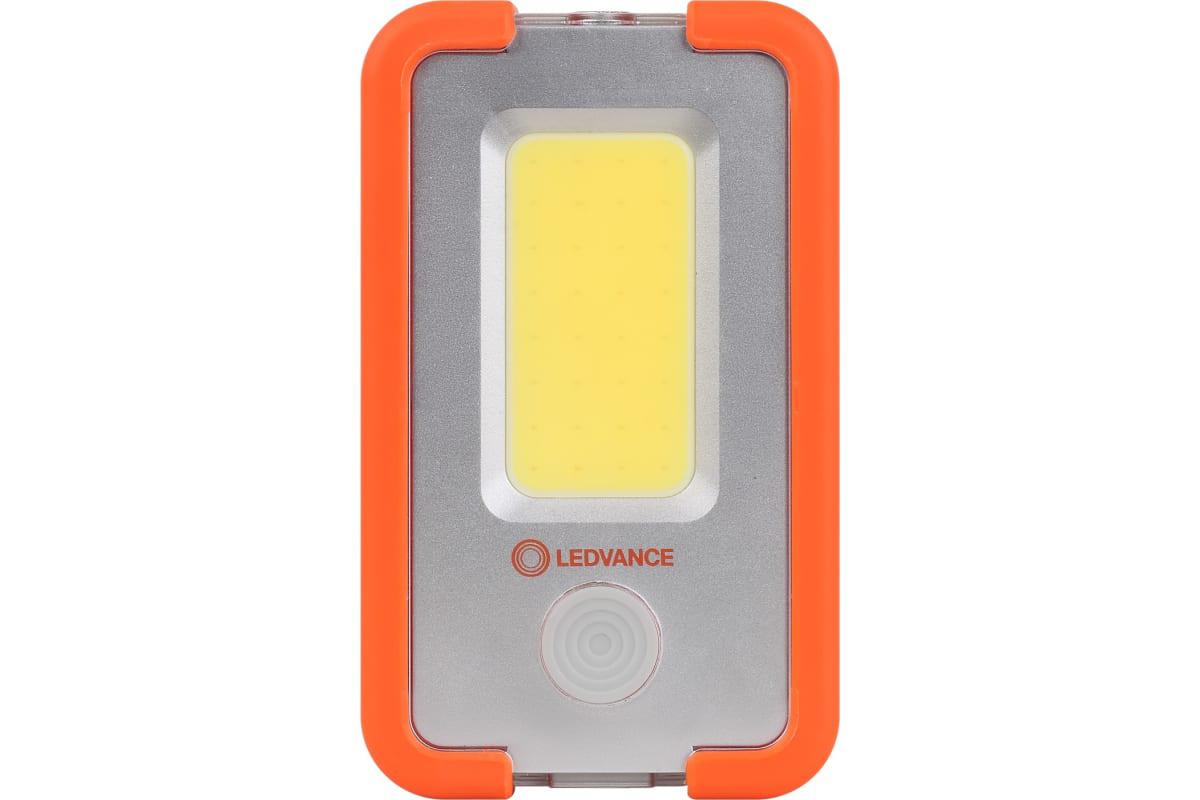 Lanterna LED camping LEDVANCE, 4W COB, 400 lm, 3 moduri de iluminare (100% 400 lm, 30% 120 lm si flash), acumulator Li-Ion 3000mAh, USB power-bank, IP20, brat magnetic, carlig, cablu incarcare USP inclus, Portocaliu/Gri