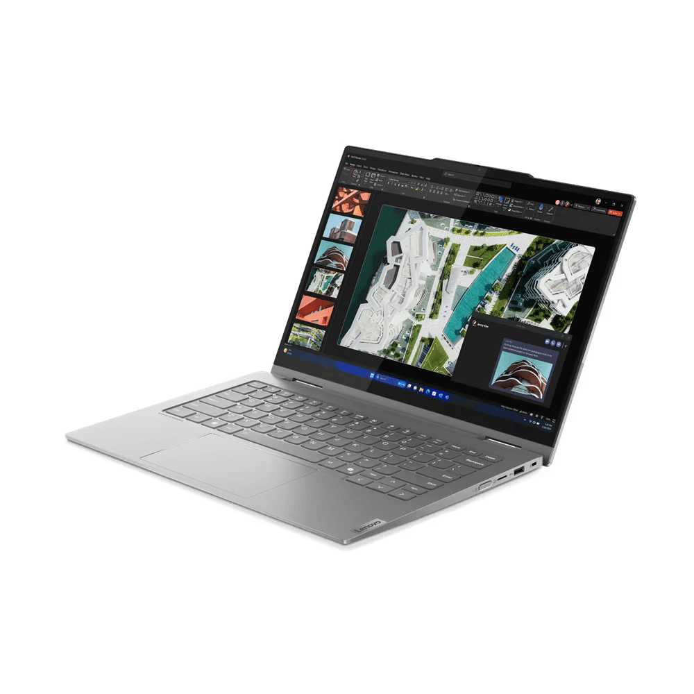 Laptop Lenovo ThinkBook 14 2-in-1 G4 IML;14″ WUXGA (1920×1200) IPS 300nits Glossy / Anti-fingerprint, 100% sRGB, Corning® Gorilla® Glass, Touch;Intel® Core™ Ultra 7 155U, 12C (2P + 8E + 2LPE) / 14T, Max Turbo up to 4.8GHz, 12MB;Video Integrated Intel® Graphics;RAM 1x 16GB SO-DIMM DDR5-5600, Two DDR5 SO-DIMM slots, dual-channel capable, Up to 32GB DDR5-5600 offering;SSD512GB SSD M.2 2242 PCIe® 4.0×4 NVMe®, Optical: no ODD;microSD Card Reader, Speakers: Stereo speakers, 2W x2, Dolby® Atmos®, audio by HARMAN, Camera: FHD 1080p + IR Hybrid with Privacy Shutter, LAN: No Onboard Ethernet;WLAN Wi-Fi® 6E, 11ax 2×2 ;Bluetooth 5.3, WWAN (3G/4G): None, Fingerprint: Touch Style, Match-on-Chip, Integrated in Power Button;I/O Ports: 1x USB-A (USB 5Gbps / USB 3.2 Gen 1), 1x USB-A (USB 5Gbps / USB 3.2 Gen 1), Always On, 1x USB-C® (USB 10Gbps / USB 3.2 Gen 2), with USB PD 3.0 and DisplayPort™ 1.4, 1x USB-C® (Thunderbolt™ 4 / USB4® 40Gbps), with USB PD 3.0 and DisplayPort™ 1.4, 1x HDMI® 2.1, up to 4K/60Hz, 1x Headphone / microphone combo jack (3.5mm), 1x microSD card reader;65W USB-C® (3-pin);Battery Integrated 60Wh, Keyboard: Backlit, English, Buttonless glass-like Mylar® surface multi-touch touchpad, supports Precision TouchPad (PTP), 75 x 120 mm (2.95 x 4.72 inches), Color: Luna Grey;Weight 1.64 kg;Dimensions 313 x 224 x 16.9-18.5 mm, Warranty: 3Y Onsite upgrade from 1Y Courier/Carry-in Windchill (CPN), OS: Windows® 11 Pro, Romanian / English