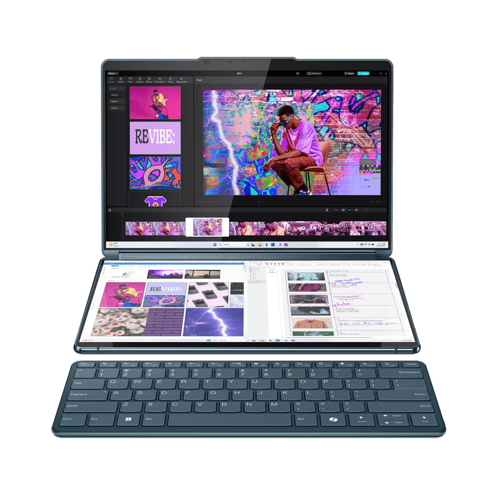 Laptop Lenovo Yoga Book 9 13IMU9 cu procesor Intel® Core™ Ultra 7 155U pana la 4.8GHz, 2 x 13.3″, 2.8K, OLED, Touch, 16GB DDR5, 1TB SSD, Intel® Graphics, Windows 11 Home, Tidal Teal, 3y on-site, Premium Care