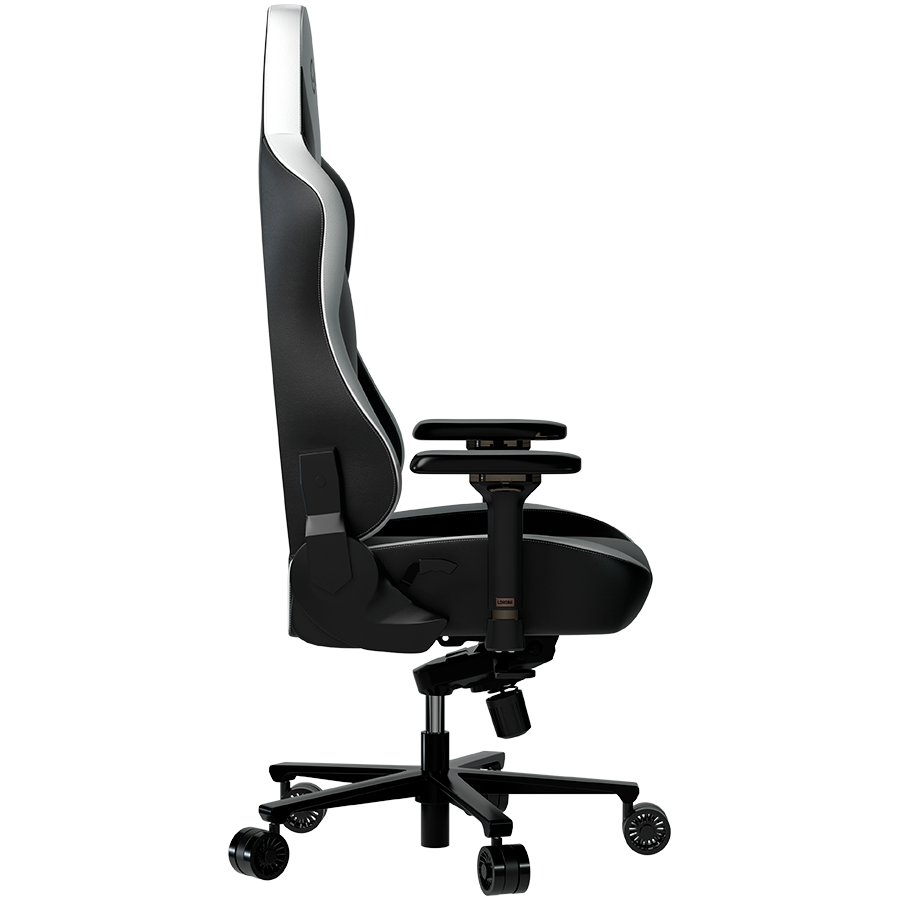 LORGAR Base 311, Gaming chair, PU eco-leather, 1.8 mm metal frame, multiblock mechanism, 4D armrests, 5 Star aluminium base, Class-4 gas lift, 75mm PU casters, Black + white