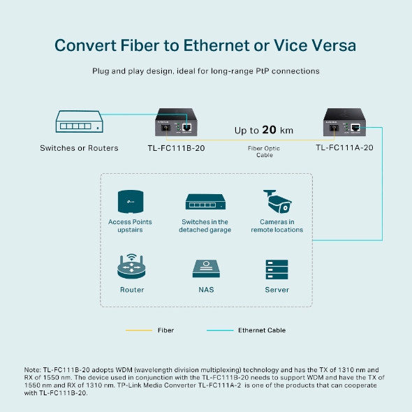 Media convertor TP-Link TL-FC111B-20, 10/100 Mbps WDM, pana la 20 km